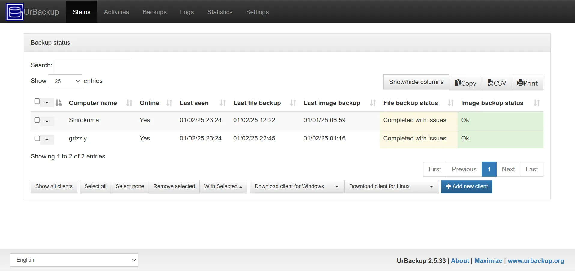 UrBackup はオープンソースのバックアップツールで基本WebGUIで操作します. クライアントは Windows, Linux, macOS に対応しています.